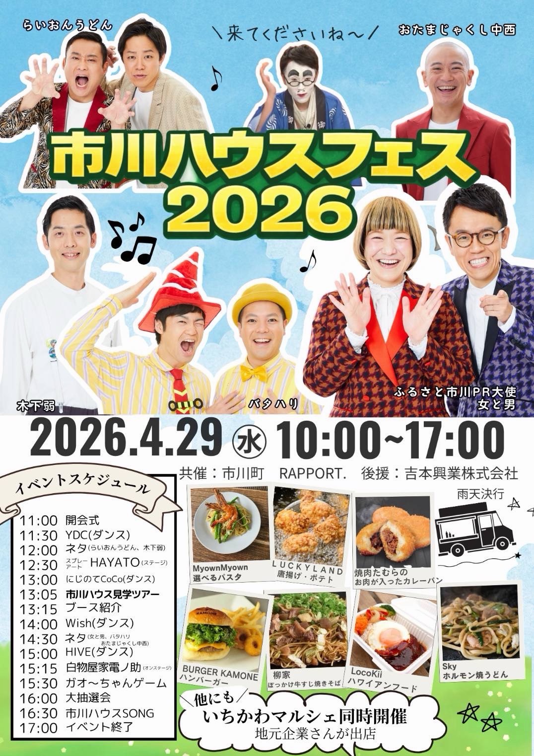お笑いコンビ『女と男』の市川さんを中心とした吉本興業の芸人によるネタ、ゲーム、ステージや豪華抽選会、キッチンカーも多数出店する『市川ハウスフェス』にてスプレーアートのパフォーマンス・販売をさせていただきます!